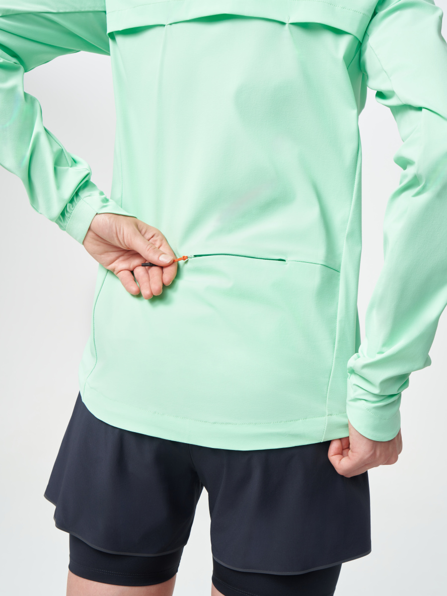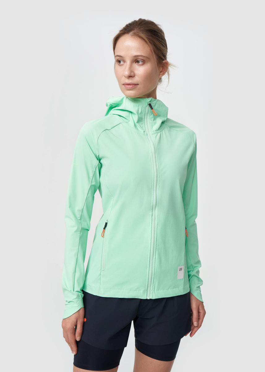Подойдёт для пробежек весной, летом и осенью при температуре от 0° до +12°C. Куртка сшита из ткани с водоотталкивающей DWR-пропиткой, которая защитит от небольших осадков. В зависимости от погоды под куртку можно надеть футболку или лонгслив. Григорий Лазарев, основатель бренда GRI: «Впервые сделали на куртке Джеди рукава без манжет-перчаток. Из других нововведений — карман на спине: в него можно убрать телефон и прочие мелочи. В остальном модель осталась без изменений». Состав 85% нейлон, 15% спандекс. • DWR-пропитка защитит от небольшого дождя. Через 10-15 минут под сильным дождём изделие начнёт намокать.