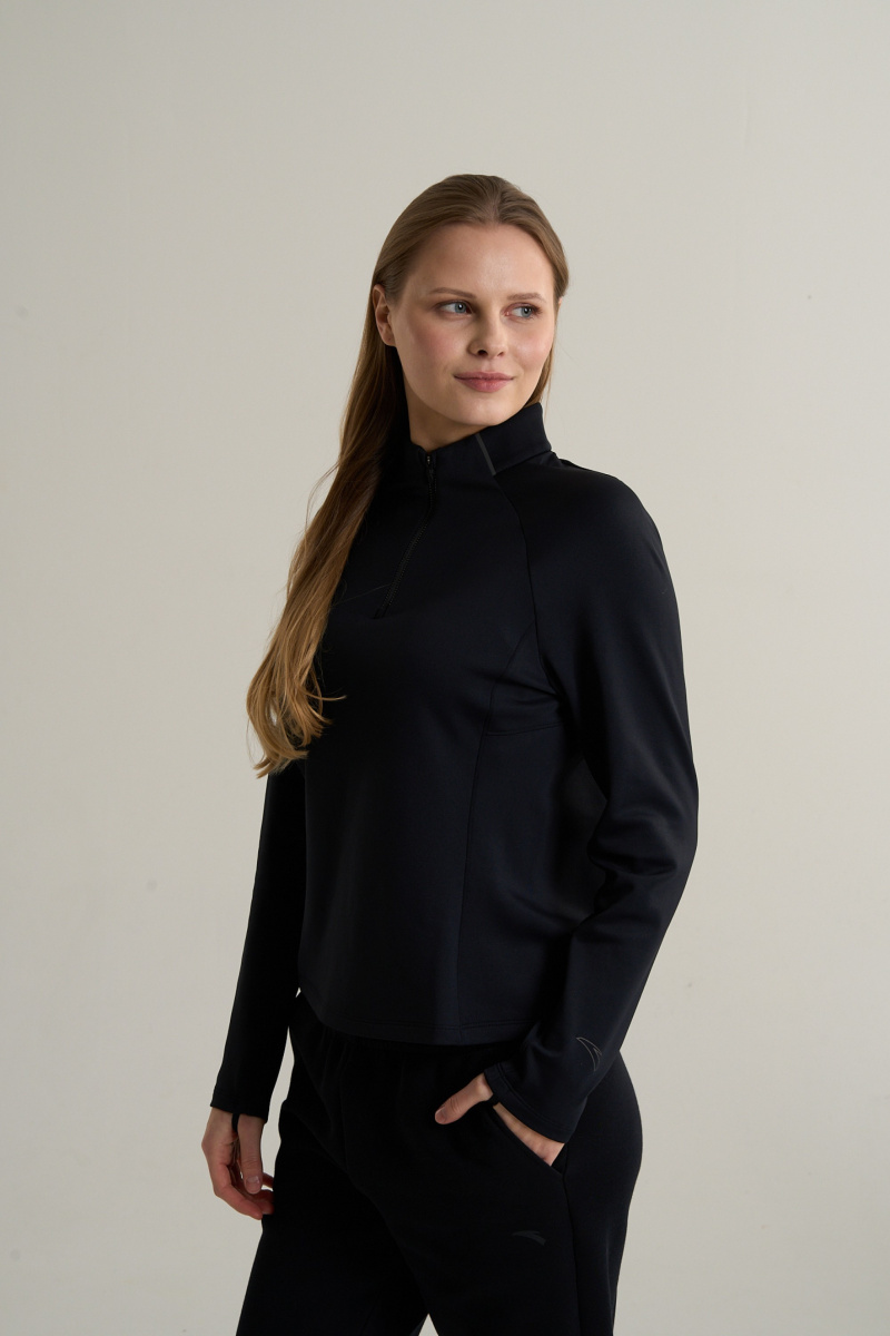 Женский лонгслив Anta half-zip утепленный,черный, 862615403-4